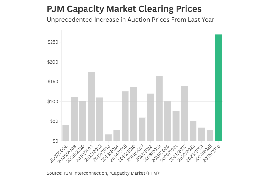 These auction prices are just starting to hit electricity bills across the region, and, unfortunately, it’s just the beginning. The most recent auction, which will impact prices starting in the summer of 2026, resulted in even higher prices. With demand surging from data centers and other new large customers, this tightness in the market could take years to resolve, potentially making big annual rate hikes the new normal.