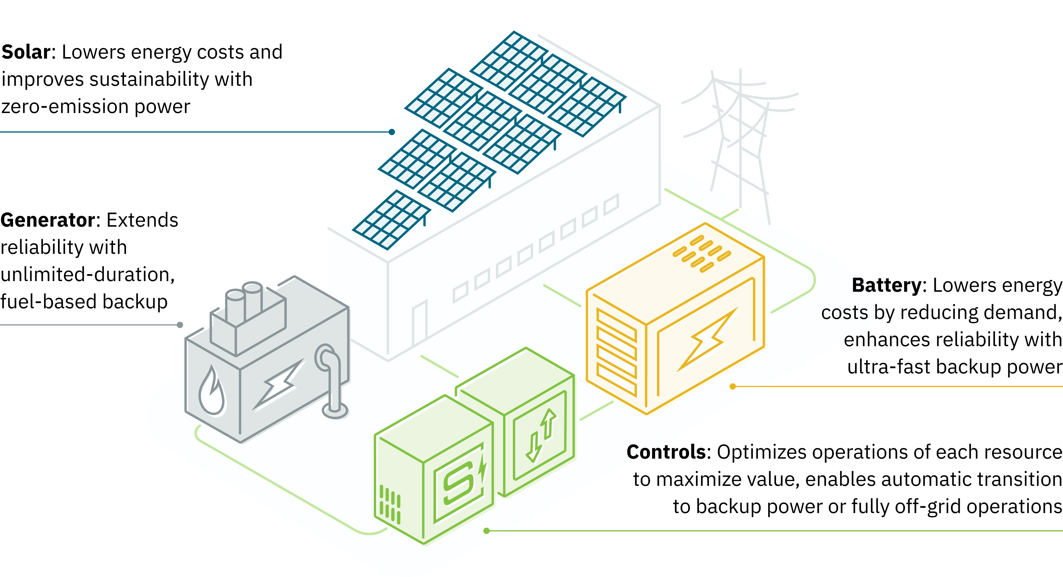 Many of our advanced microgrids also feature natural gas-fueled generators, which provide a source of unlimited duration, low-emission backup power in case of extended outages.
